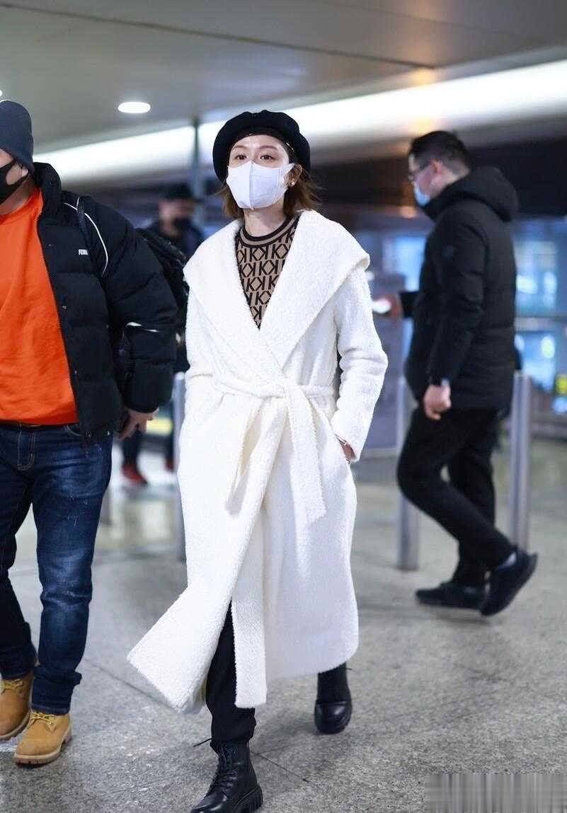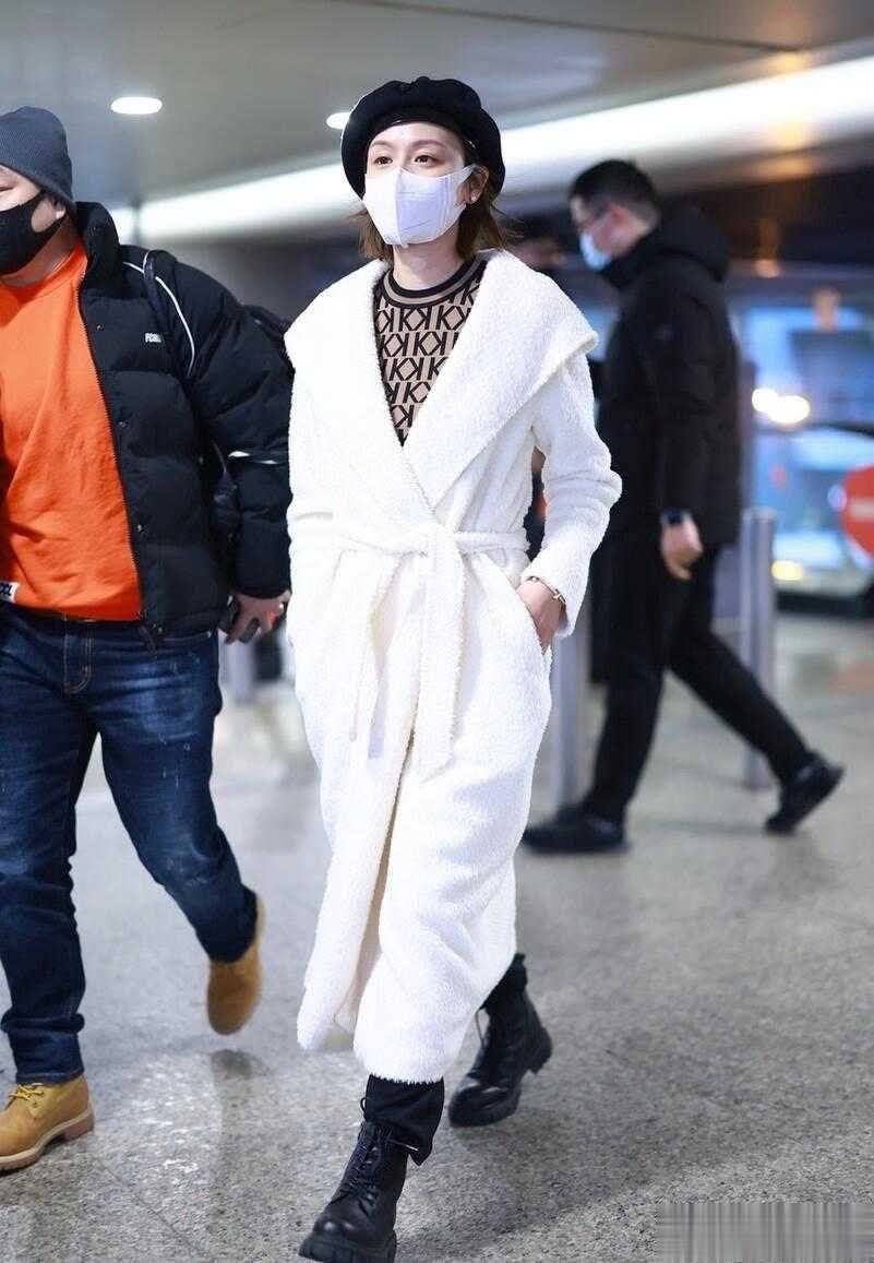 当叶一茜走在机场的那一刻,她的这身装扮立刻吸引了众人的目光。白色睡袍的纯净与马丁靴的硬朗形成了鲜明的对比,这种反差不仅没有显得突兀,反而让她看起来更加时髦和洋气,白色睡袍风长款大衣是这一身搭配的点睛之笔,毛绒面料自带温柔质感,浴袍式的绑带设计还能掐出腰线,避免了长款外套的臃肿感,身形被修饰得利落又优雅,这种“松而不垮”的版型超适合中年女性,轻轻松松遮肉显瘦。